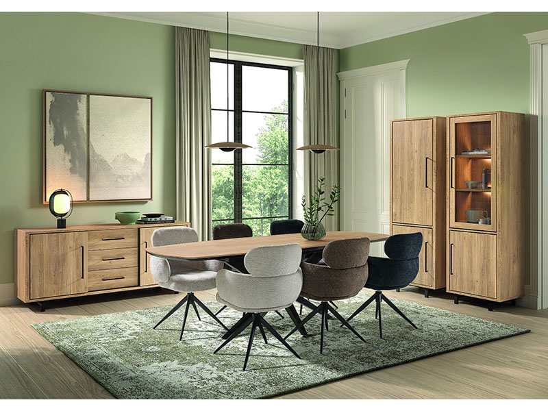 Er zijn verschillende kasten, dressoirs en TV-kasten, salontafels en eetkamertafels te verkrijgen.